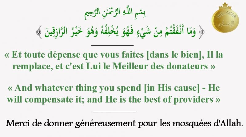 Merci de donner généreusement pour les mosquées d’Allah. https://dons.belagir.ca/dons