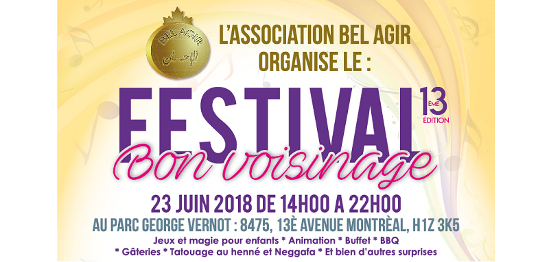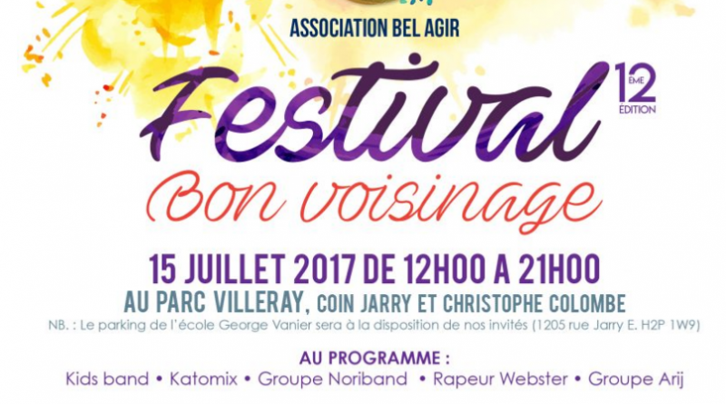 Lire la suiteL’association Bel Agir annonce son Festival annuel ‘Festival Bon Voisinage’ le samedi 23 juin 2018 de 14h à 22h au Parc George-Vernot.