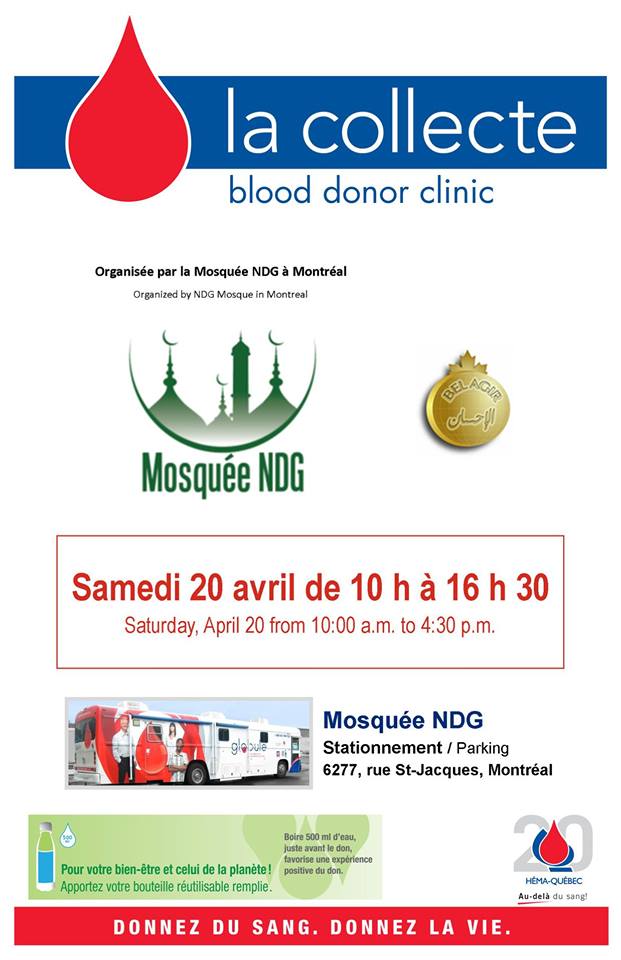 Activités Divers Collecte de Sang: DONNEZ DU SANG. DONNEZ LA VIE. 15 avril 20191 mai 2019 Ihssan A. Toutes les 80 secondes, quelqu’un a besoin de sang au Québec. Souhaitez-vous donner du sang?
