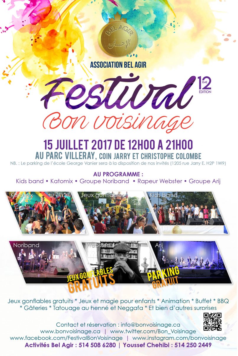 L’association Bel Agir annonce son Festival annuel ‘Festival Bon Voisinage’ le samedi 15 juillet 2017.