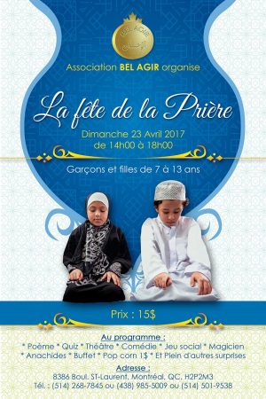 L’association Bel Agir organise une activité pour les enfants de 7 à 13 ans »la fête de la prière », le dimanche 23 Avril 2017.